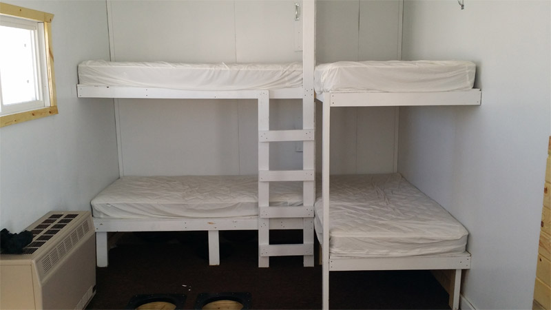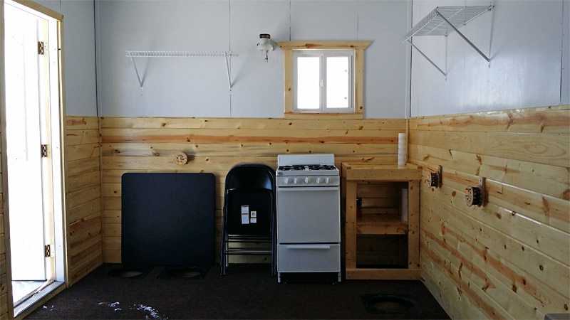 All of our fish houses have: Table and chairs, direct vent heaters with thermostats for safe even heating, gas lights, gas cook stoves or 20" full range, mattresses, rattle wheels on every hole, carpeted floors, 2 holes per fisherman and private attached bathrooms. All ice houses are generator ready (bring your own) and all rentals include the road access fee.